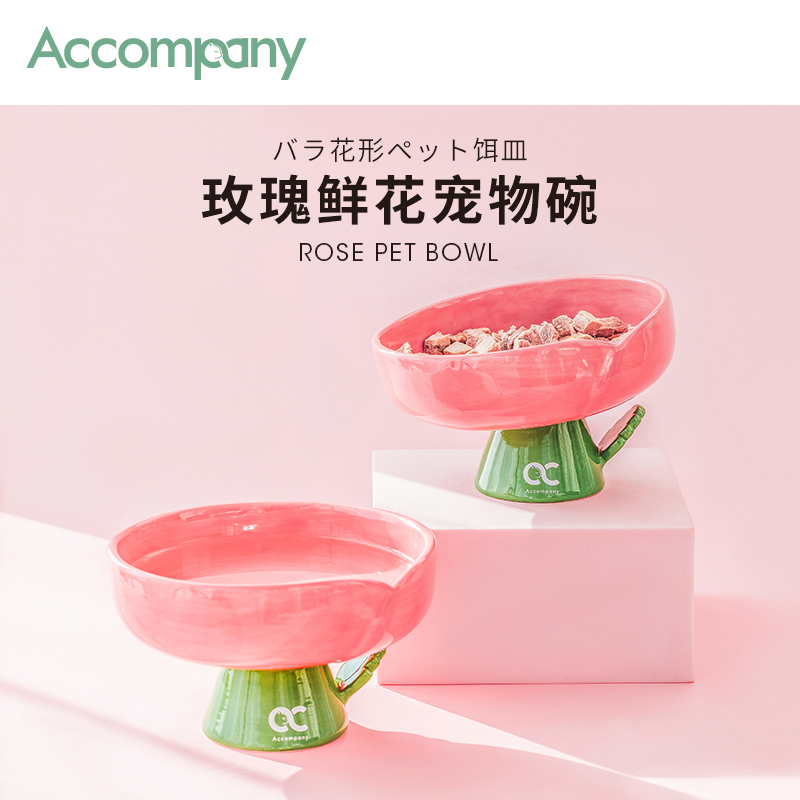 장미 애완 동물 신선한 꽃 고양이 그릇 높이 향상 경추 보호 안티 블랙 턱 공급 피더 그릇과 함께