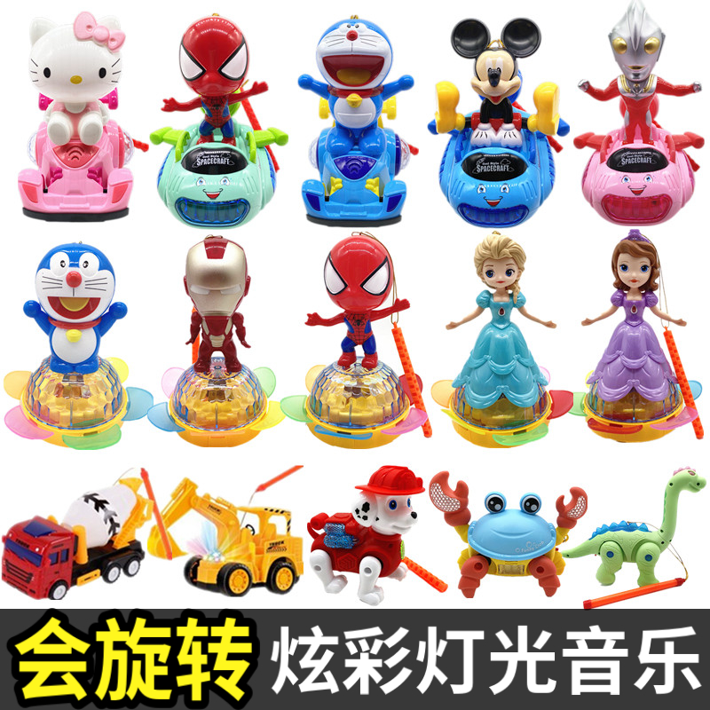 중추절 어린이 작은 등불 휴대용 발광 만화 장난감 전기 음악 회전 소년 소녀 어린이 공주 등불