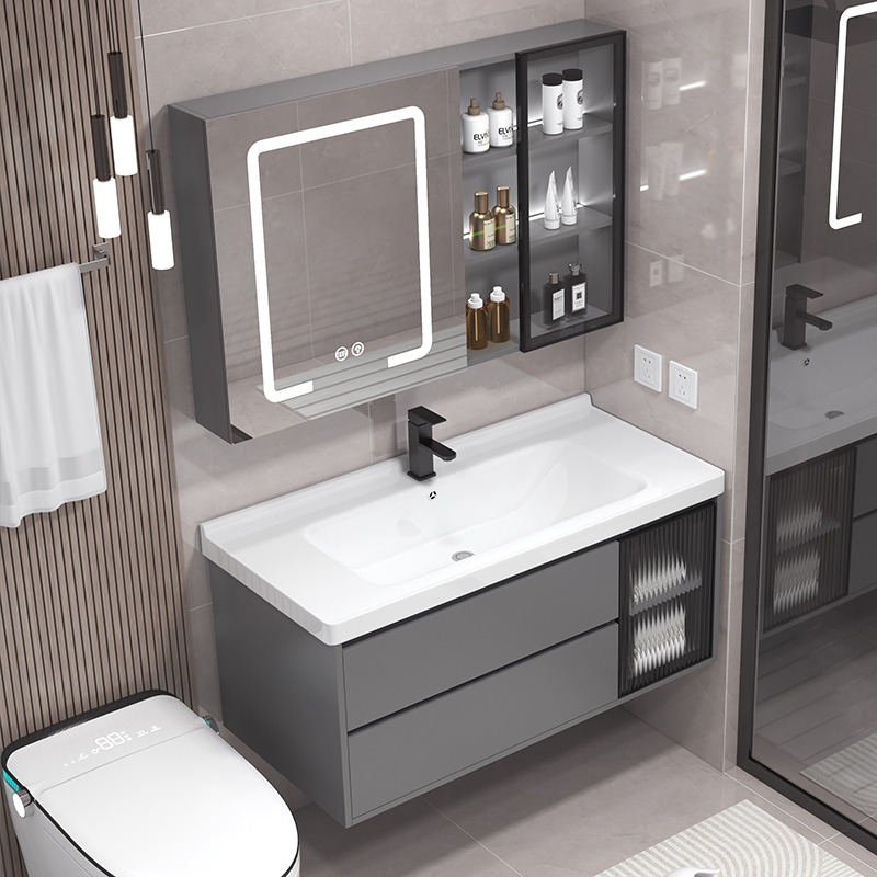 리글리 욕실 캐비닛 조합 현대 세라믹 일체형 세면대 간단한 세면 조명 고급 원목 욕실 핸드 워시 싱크대