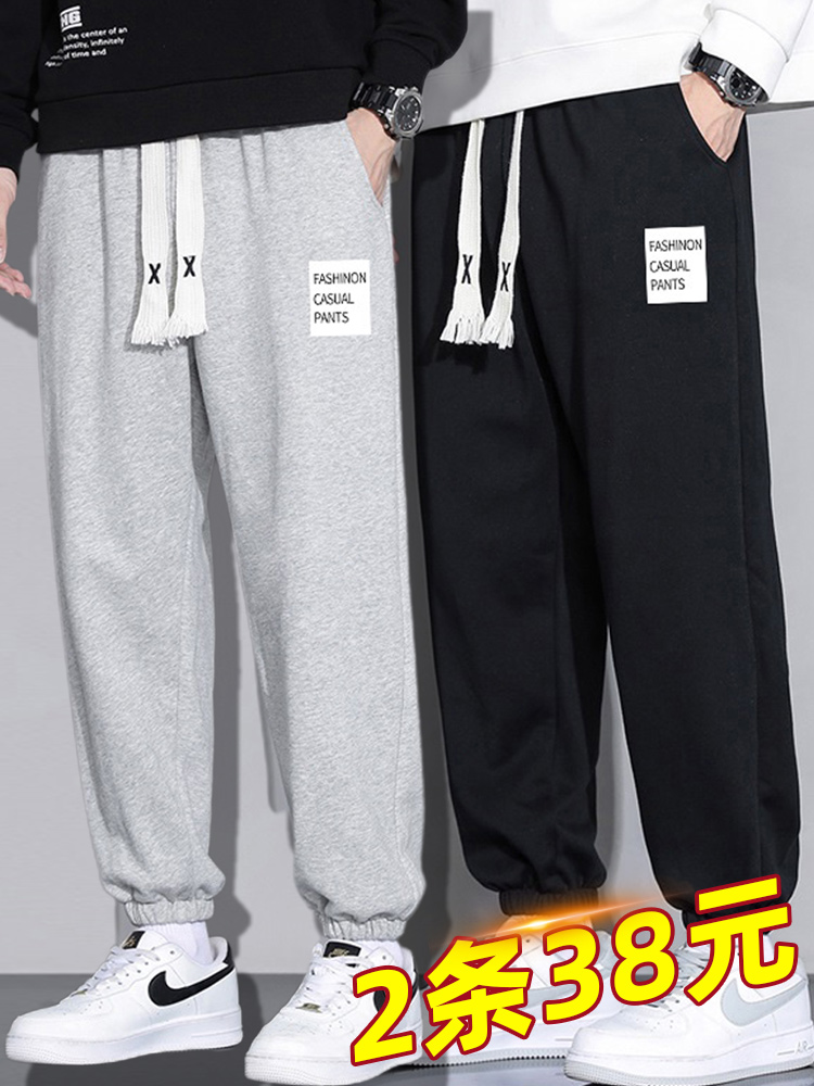 여름 얇은 섹션 빔 다리 스웨트 팬츠 남성용 봄과 가을 모델 스트레이트 캐주얼 스웨트 팬츠 조류 느슨한 9 분 바지 소년