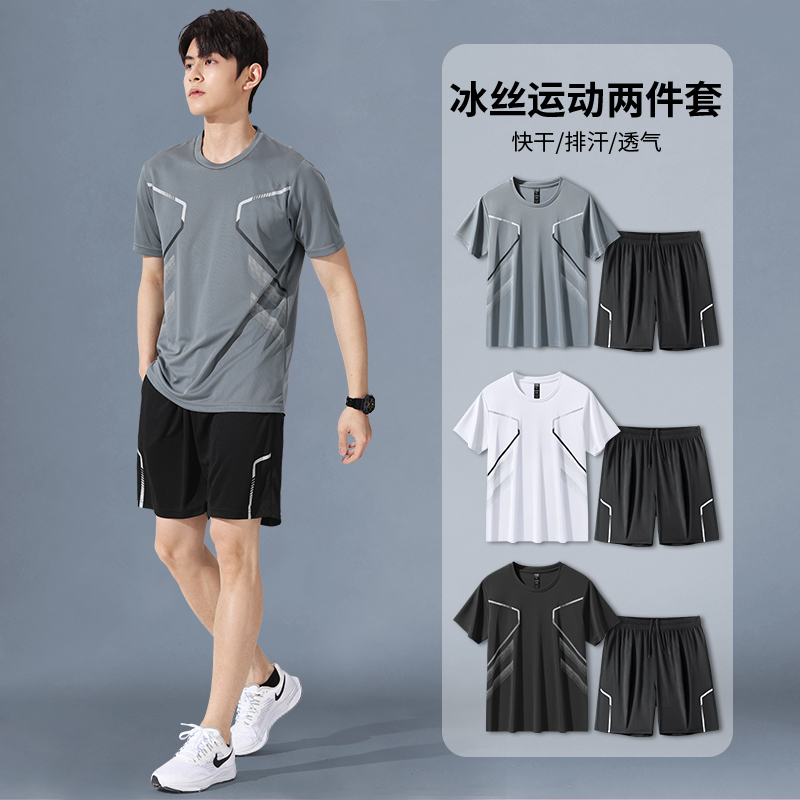 운동복 정장 남성 여름 달리기 반팔 속건성 의류 농구 유니폼 배드민턴 피트니스 의류 반바지 캐주얼웨어