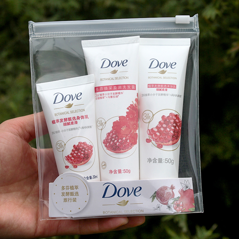 도브 트래블 팩 석류 샤워 젤 + 샴푸 + 바디 밀크 3 in 1 휴대용 케어 세트