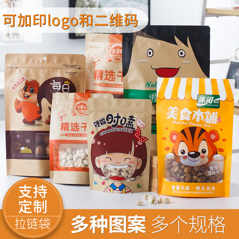 견과류 크래프트 종이 봉지 말린 과일 포장 백 레저 식품 지퍼 백 크래프트 자체 밀봉 스탠드 업 파우치 스낵 백
