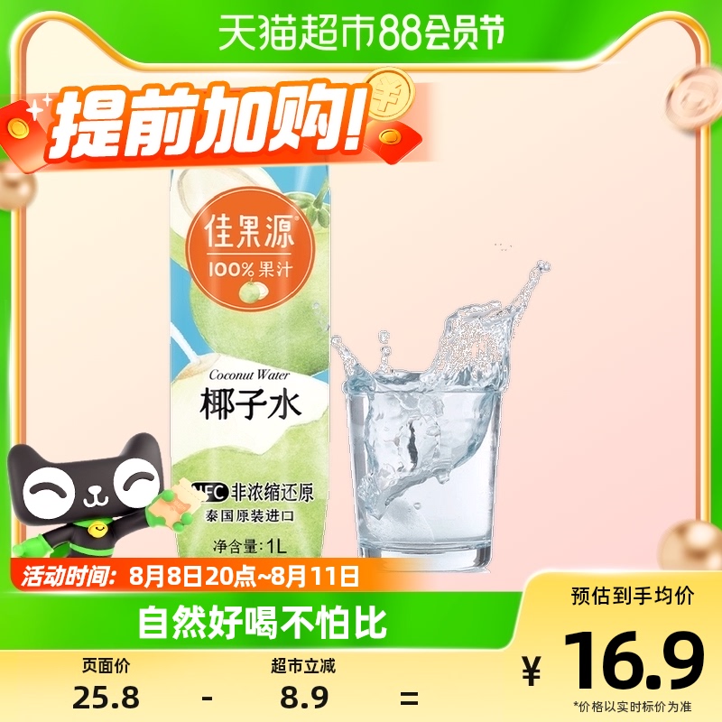 지아 궈 위안 지아 농의 100 % NFC 태국 코코넛 워터 1L * 1 병 전해질 보충 0 첨가제 음료
