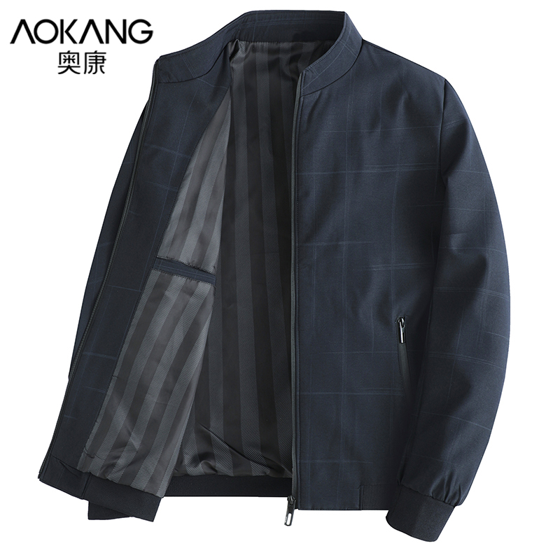 다크 프린트] 아오 캉 칼라 재킷 남성용 2023 가을 새로운 중년 및 노인 아버지 봄 가을 재킷