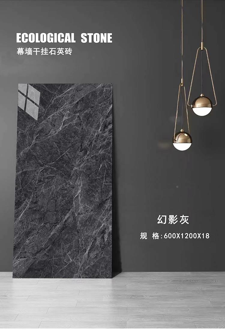 조경 커튼 월 타일 건식 매달려 조경 벽 18mm 모조 대리석 그리스 회색 포장 돌 외부 석영 타일