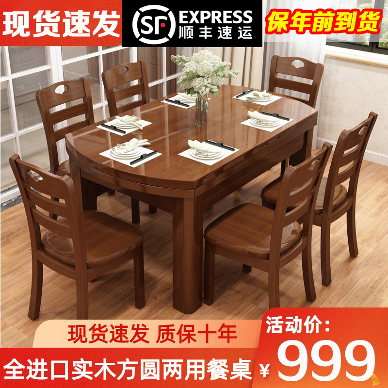 모든 단단한 나무 식탁과 의자 조합 개폐식 접이식 원형 테이블 현대 미니멀리스트 소형 가정용 원형 식탁