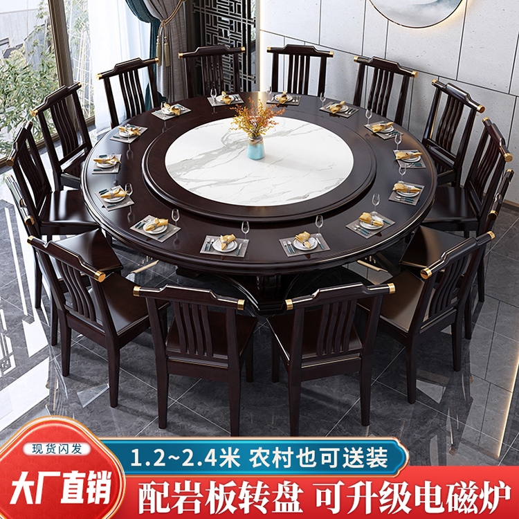 새로운 중국식 원목 원형 식탁과 의자 조합 가정용 10 인 식탁 턴테이블 호텔 모던 록 플레이트 큰 원형 테이블
