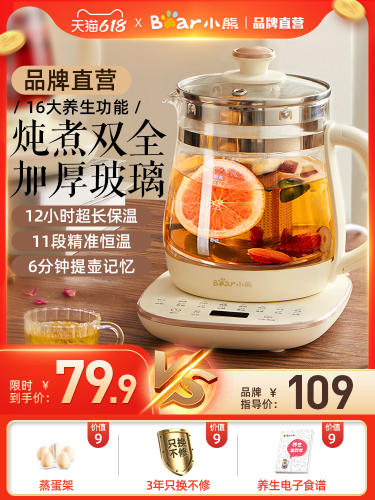 곰 건강 주전자 사무실 작은 요리 주전자 자동 유리 차 끓이는 주전자 가정용 다기능 끓는 주전자