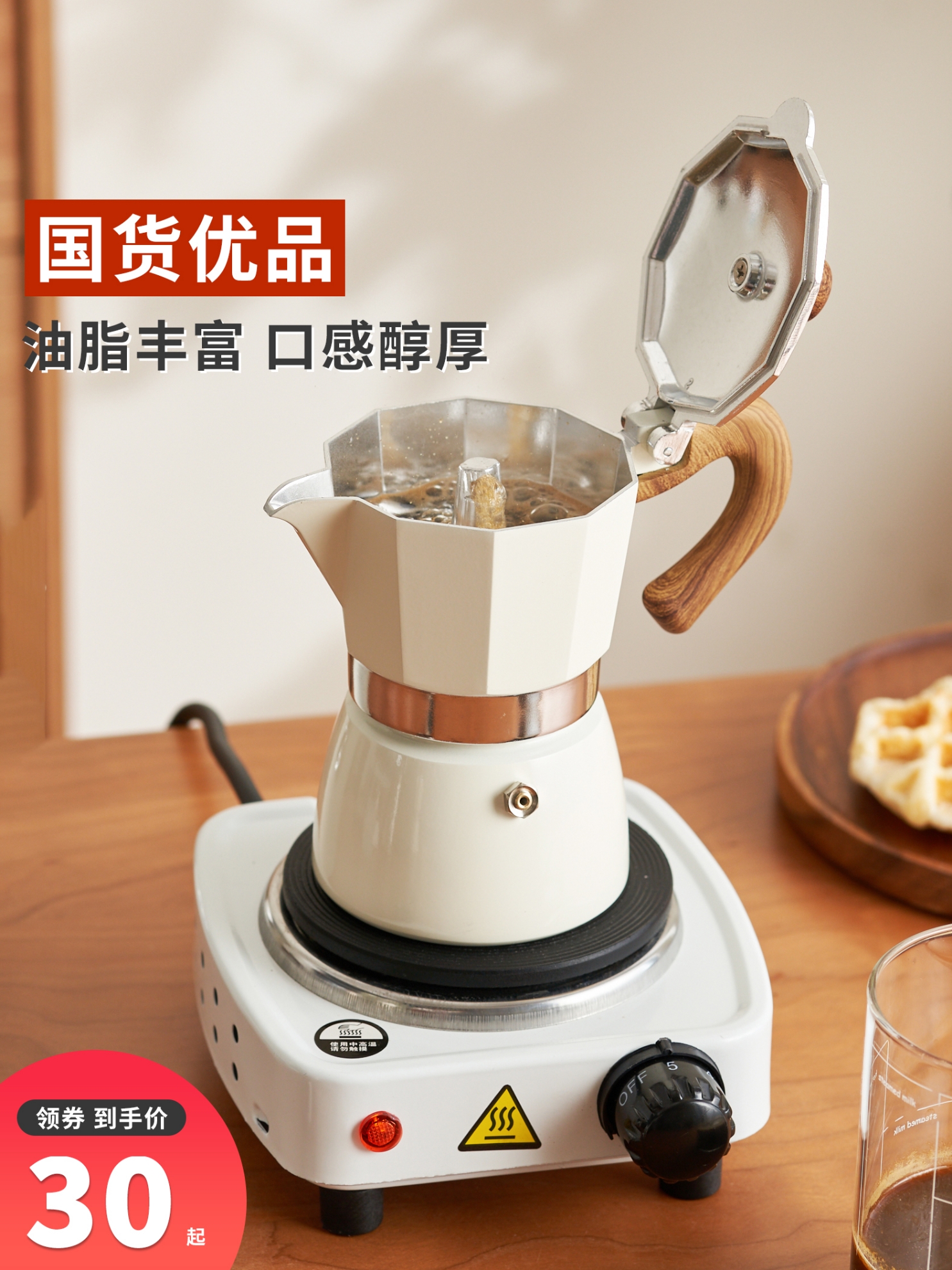KUBE 문 에스프레소 모카 포트 커피 메이커 가정용 소형 전기 세라믹 스토브 추출기 더블 밸브 핸드 브루 커피 포트 세트