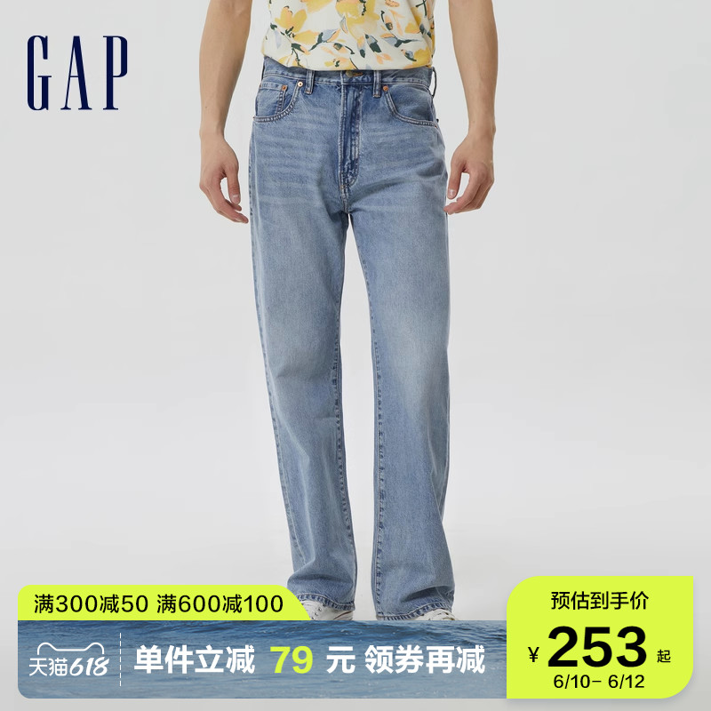 갭 남성 가을 새로운 아메리칸 패션 루즈 와이드 레그 청바지 543848 그라인딩 화이트 스트레이트 팬츠
