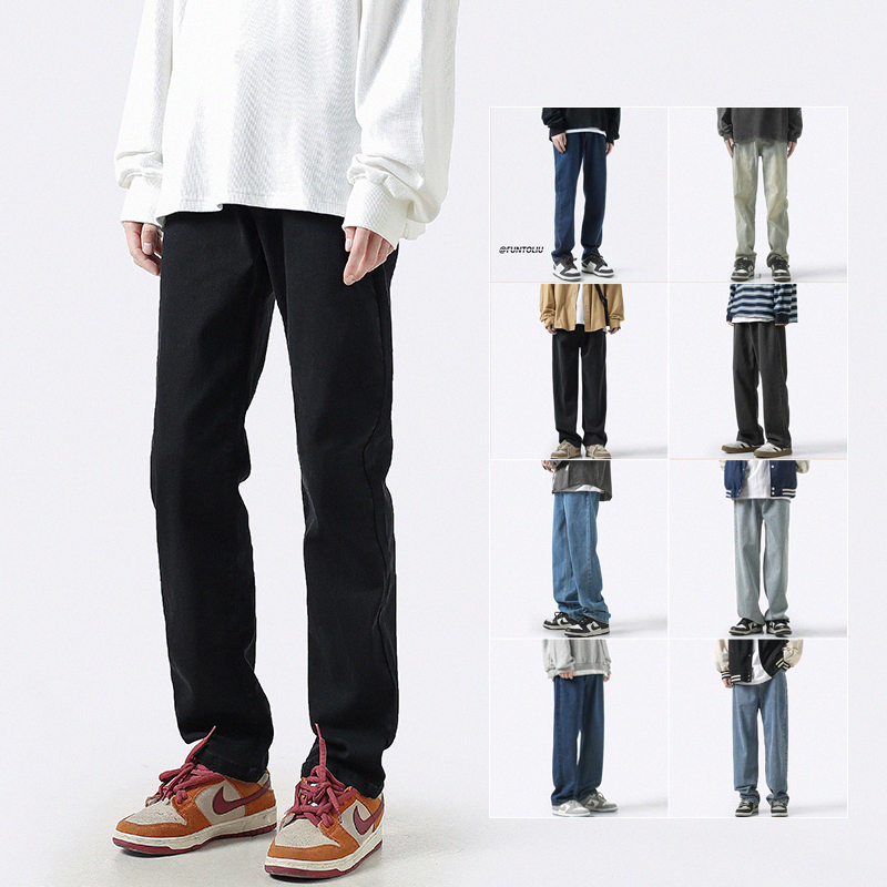 블랙 스트레이트 슬림 청바지 남성 가을 아메리칸 인조 하이 스트리트 캐주얼 바지 남성 인조 바지