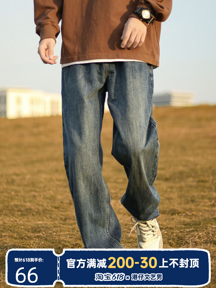 빈티지 스트레이트 청바지 남성 여름 미국 얇은 여름 남성 바지 느슨한 넓은 다리 소년 캐주얼 바지 남성용 모델