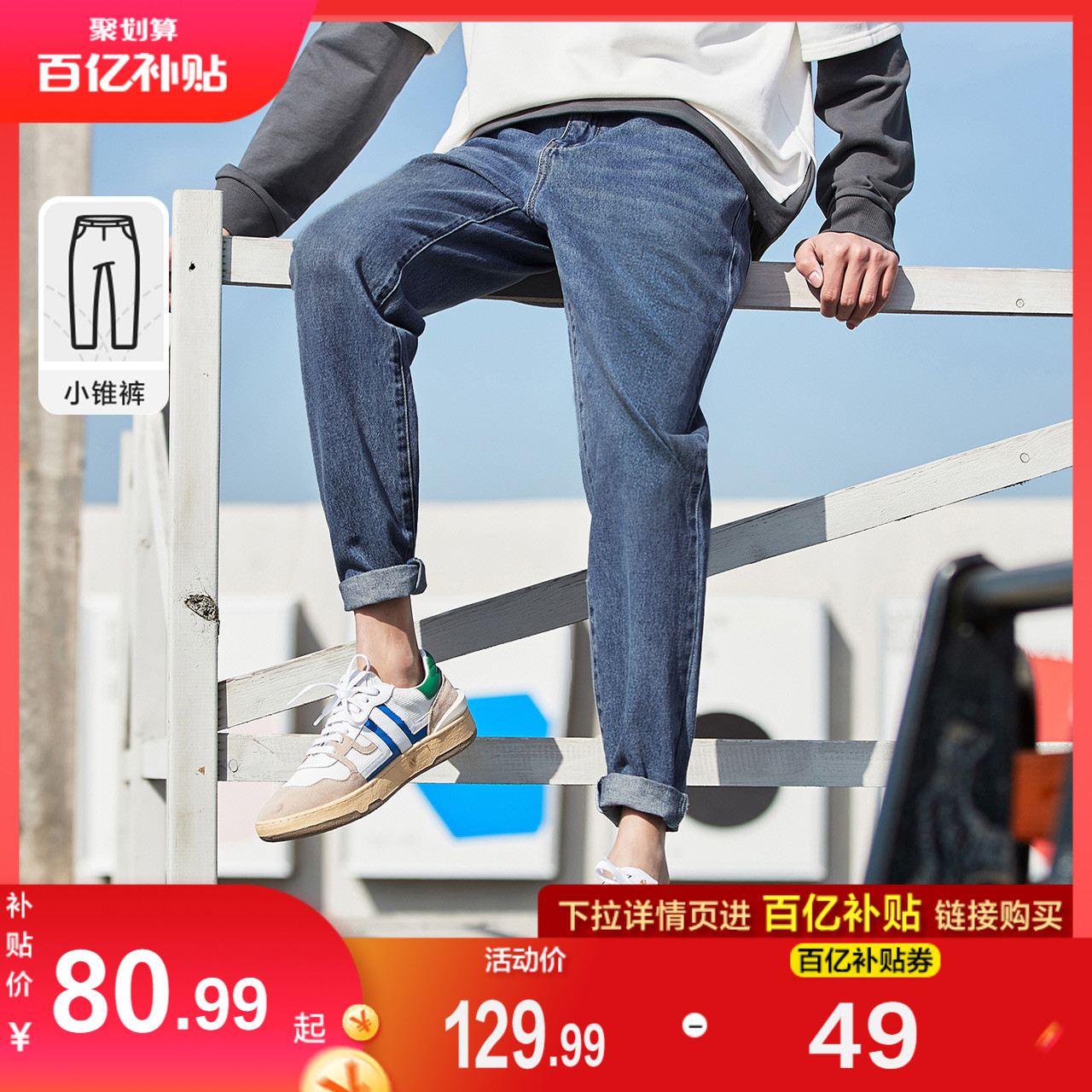 센마 청바지 남성 여름 슬림 작은 다리 바지 스트레이트 느슨한 블루 작은 원뿔 바지 워싱 바지 원뿔 바지