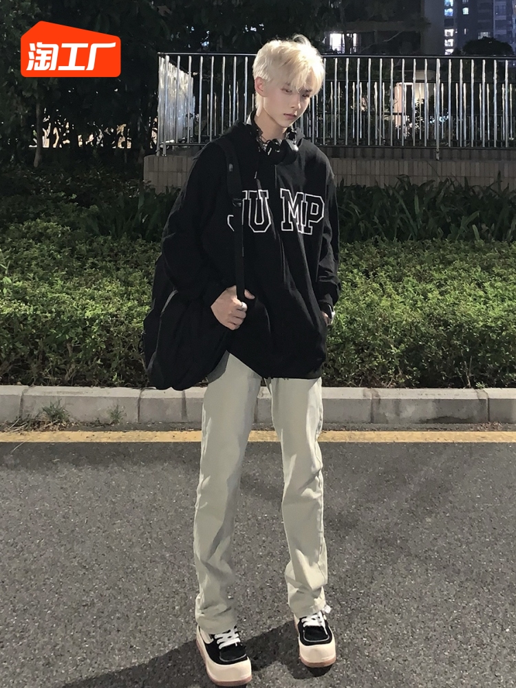 아메리칸 바이브 하이 스트리트 팬츠 남성용 클린 핏 워싱 옐로우 진흙 청바지 슬림 스트레이트 좁은 마이크로 팬츠
