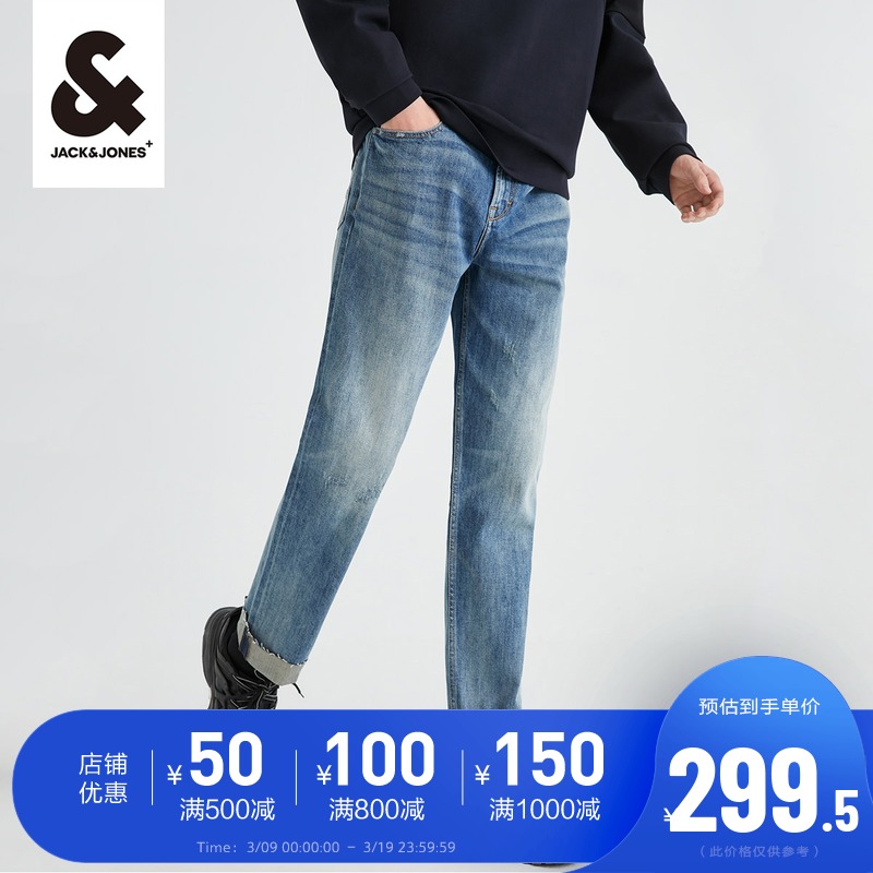 잭존스 잭존스 봄 남성 트렌디 루즈 캐주얼 편안한 워터 스트레이트 워시 청바지 221132087