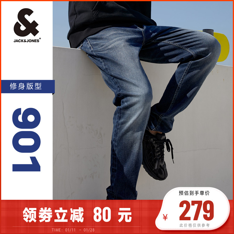 잭 존스 가을과 여름 청바지 남성 슬림 작은 다리 바지 고 신축성 바지 워시 캐주얼 블루 바지 남성용