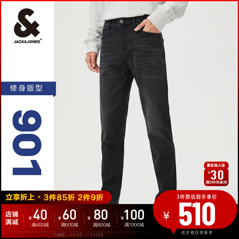 잭 존스 남성용 새로운 심플하고 편안한 슬림 캐주얼 블랙 진 따뜻한 두꺼운 긴 바지