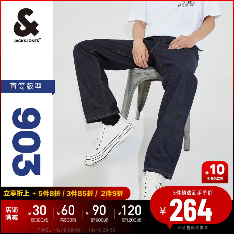 잭 존스 남성 가을 느슨한 청바지 트렌드 심플 스트레이트 로우 웨이스트 다크 코튼 팬츠 남성용 모델