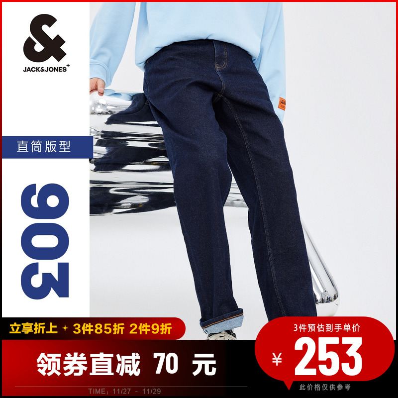 잭 존스 남성 청바지 남성용 느슨한 스트레이트 봄과 여름 진한 파란색 바지 두꺼운 섹션 따뜻한 기술 직물