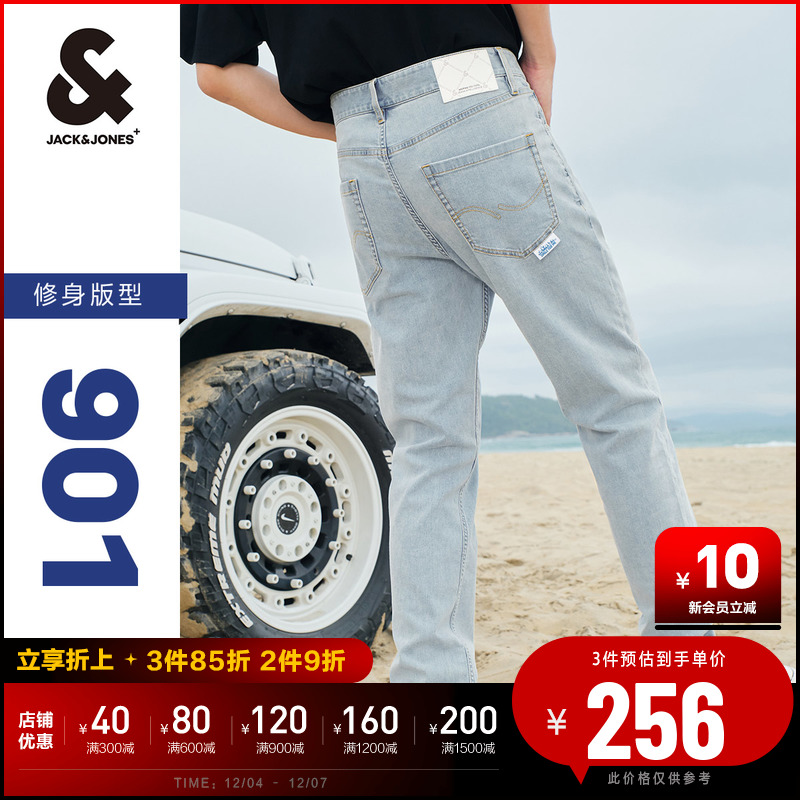 잭 존스 여름 밝은 색상의 청바지 남성 아이스 산소 바 슬림 스트레치 작은 다리 남성 바지 시원한 느낌 바지 남성 의류