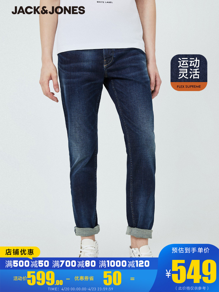 잭 존스 잭 존스 가을 새로운 남성 신축성 슬림 얇은 작은 발 패션 트렌드 데님 팬츠