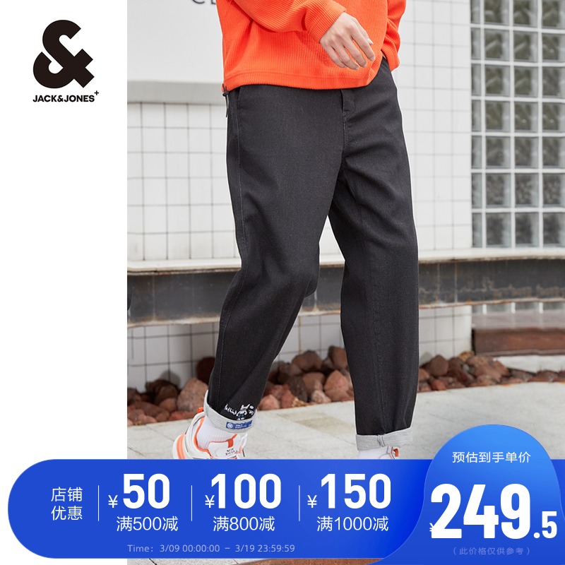 잭 존스 잭 존스 봄 가을 남성용 새로운 트렌드 느슨한 스트레이트 자수 고탄력 블랙 진