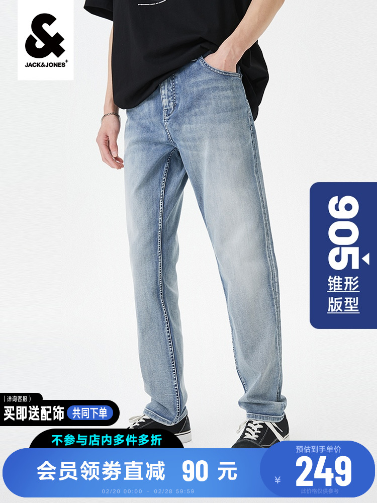 잭 존스 청바지 남성용 테이퍼 드 빈티지 워싱 남성 바지 하늘색 바지 트렌드 남성 봄 새 모델