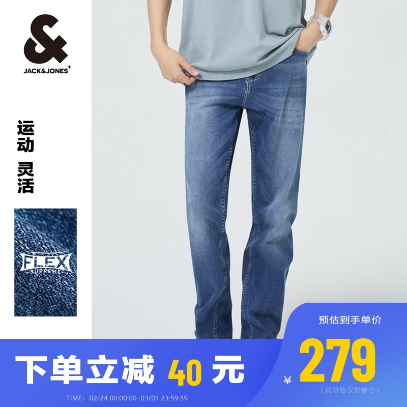 잭 존스 청바지 남성 스트레이트 스트레치 워싱 잘 생긴 블루 팬츠 트렌드 봄 섹션 남성 팬츠 라지 사이즈