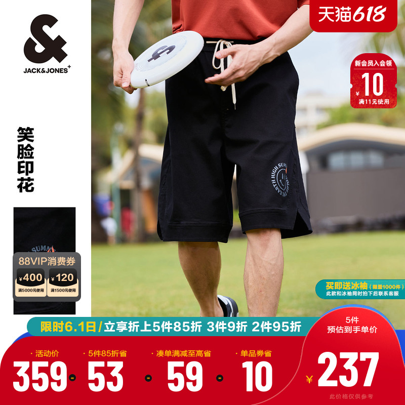 잭 존스 2022 여름 남성용 새로운 프린트 데님 반바지 스트레이트 스포츠 캐주얼 바지 5 바지 남성