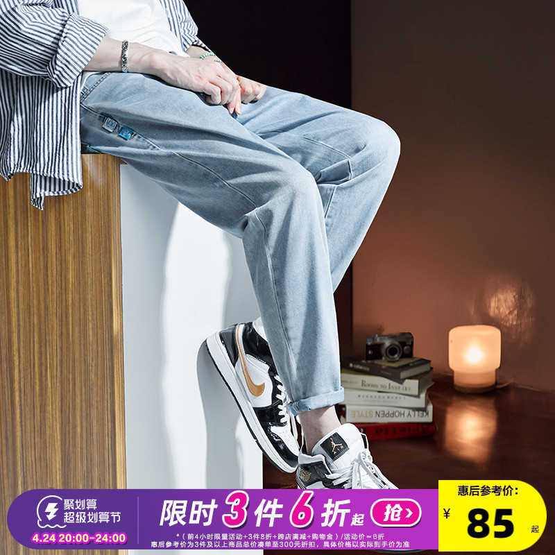 탕 라이온 2023 새로운 아이스 실크 진 남성 여름 얇은 밝은 색상의 슬림 조류 느슨한 스트레이트 롱 팬츠 데이즈