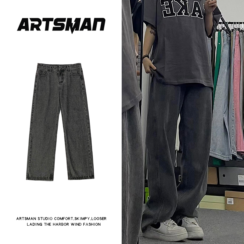 홍콩 차이 문학 남성 블랙 워싱 청바지 남성 가을 아메리칸 타이드 루즈 캐주얼 바지 스트레이트 팬츠
