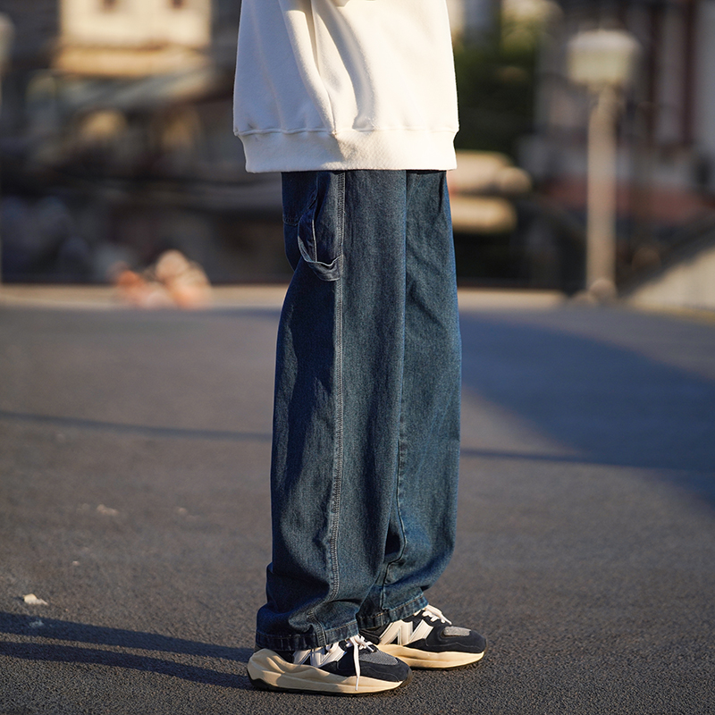 홍콩 차이 문학 남성 와이드 다리 작업복 청바지 가을 느슨한 일본 복고풍 빈티지 바이브 트렌드 스트레이트 캐주얼 바지