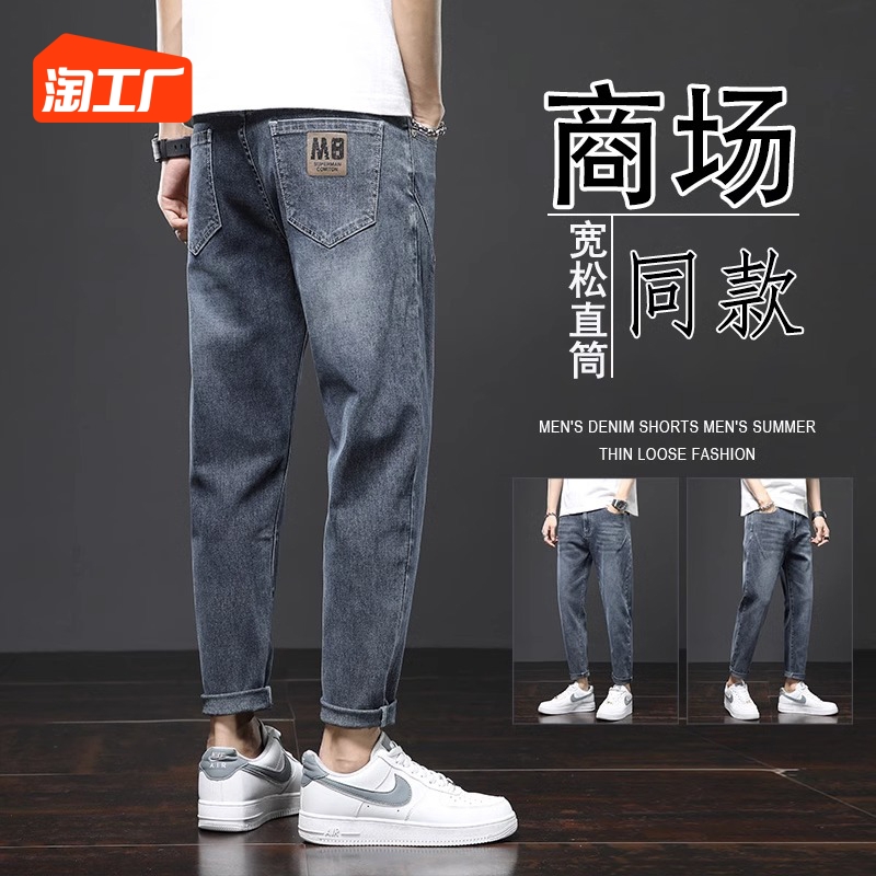 2023 년 여름 새로운 청바지 남성 모델 한국 슬림 조류 브랜드 신축성있는 작은 다리 바지 남성용 고급 9 개 남성 바지