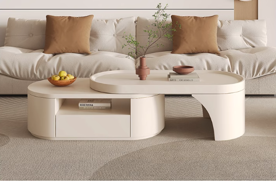크림 바람 베이킹 래커 커피 테이블 다기능 개폐식 테이블 거실 가정용 현대 간단한 티 테이블 프리미엄 느낌 식탁