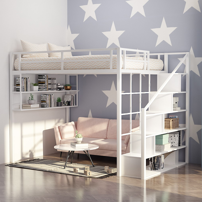 DIY 가구 맞춤형 철제 공간 절약형 로프트 스타일 침대 작은 플랫 듀플렉스 1 층 제기 침대 단일 상층