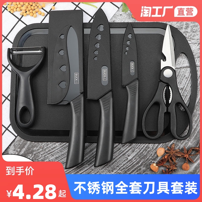 검은 강철 가정용 헬리콥터 도마 2 in 1 주방 과일 칼 기숙사 케이스 보드 도마 보조 식품 나이프 세트 세트
