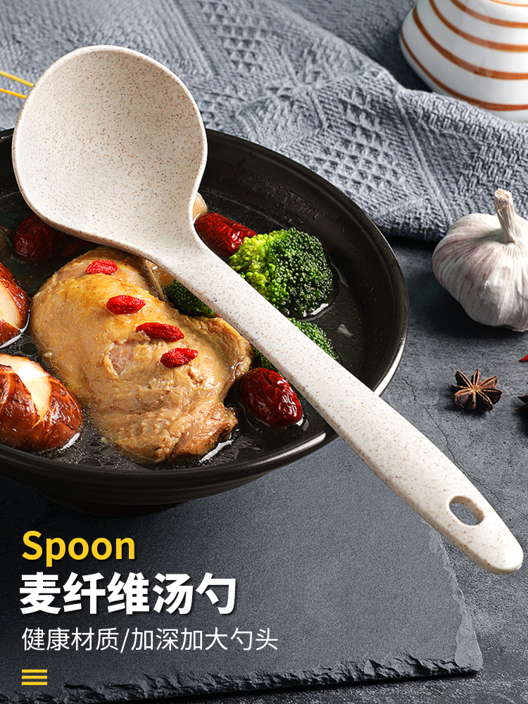 고온 내성 밀 섬유 긴 손잡이 큰 수프 스푼 가정용 죽 쌀 주방 일본식 작은 스푼 플라스틱 스푼