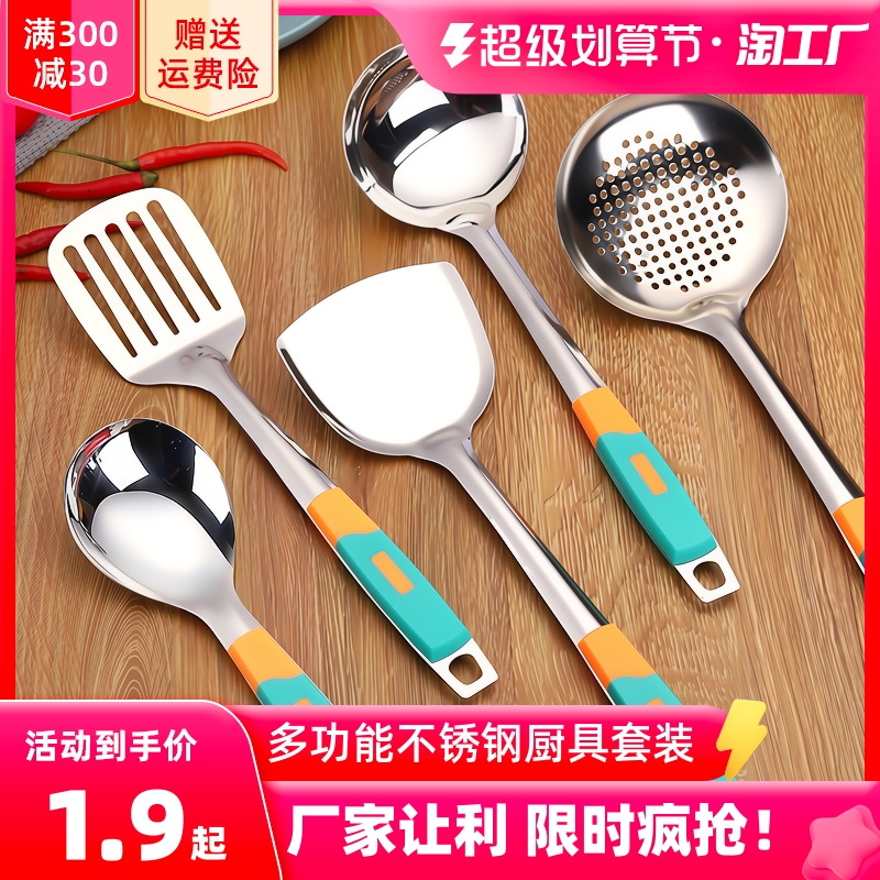 안티 스케일 스테인레스 스틸 주걱 수프 스푼 조리기구 세트 두꺼운 드롭 주방 용품 비 스틱 가정용 프라이팬 조합