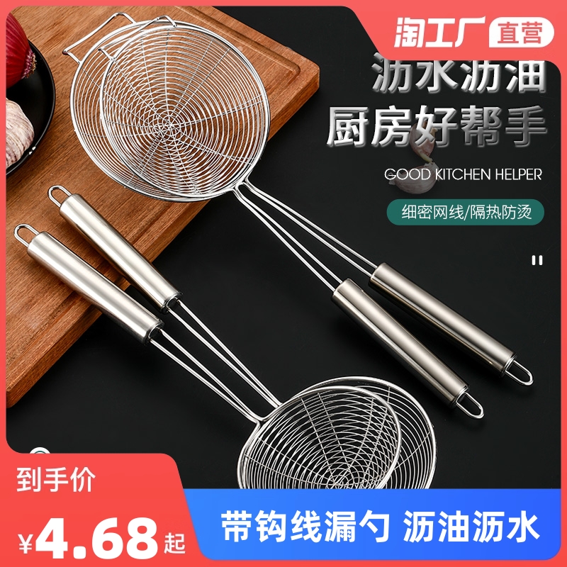 후크 라인 누출 스푼이있는 대형 누출 스푼 스테인레스 스틸 가정용 주방 국수 튀김 만두 체 체 냄비 낚시 숟가락