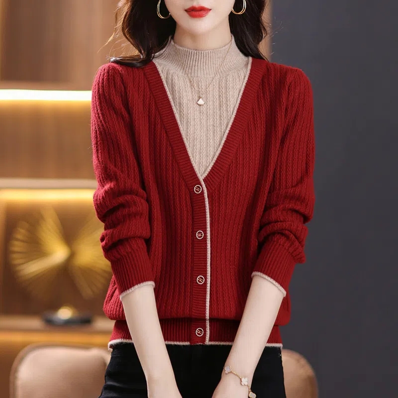 레트로 여성용 하프 하이넥 투피스 점퍼