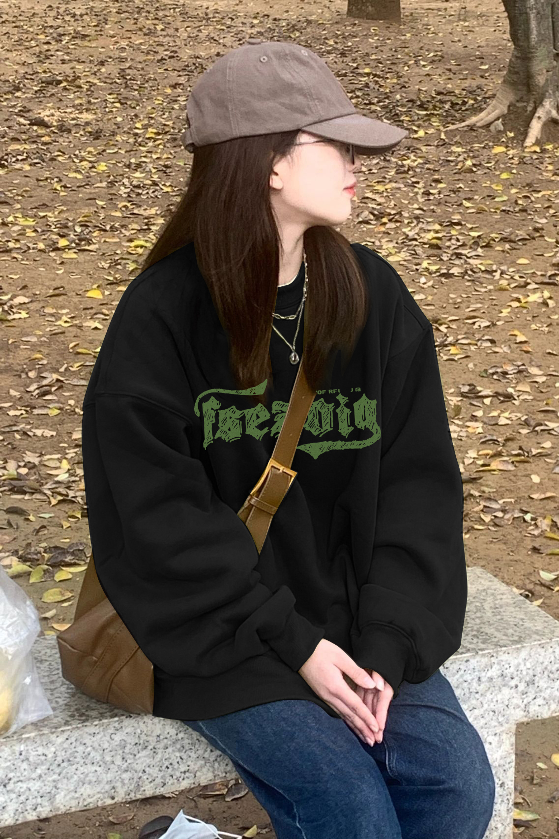 아메리칸 레트로 빈티지 라운드 넥 스퀘어 숄더 스웨터