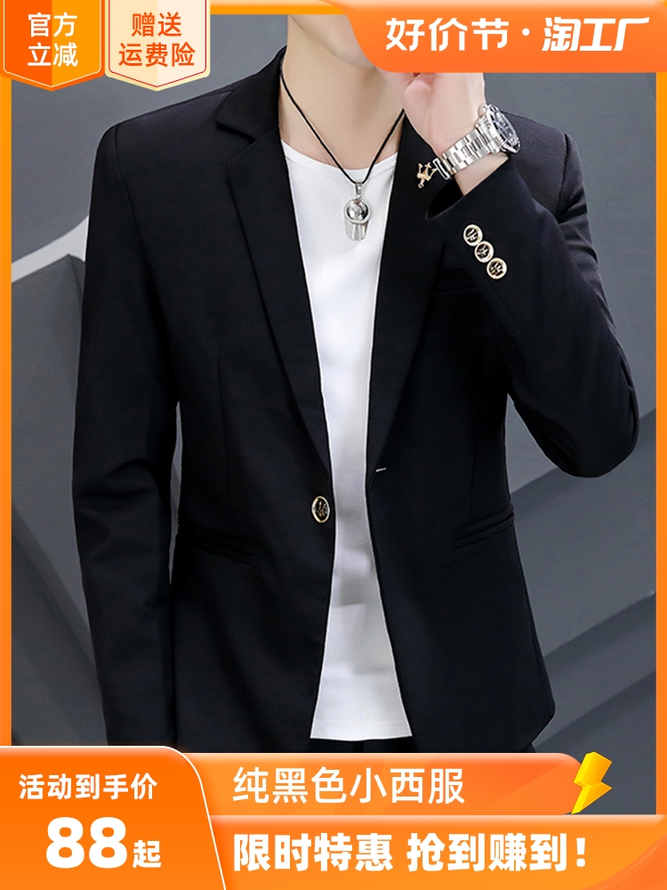 순수한 검은 색 정장 남성 재킷 캐주얼 봄과 가을 싱글 탑 한국 슬림 고급 비즈니스 정장 작은 정장