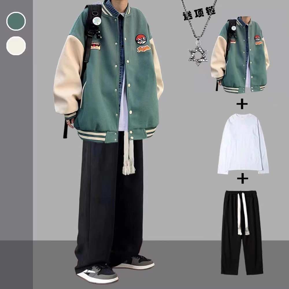 야구 의류 재킷 남성 봄 가을 조류 학생 스웨터 정장 남성 착용 잘 생긴 재킷 3 피스 세트