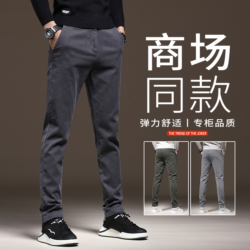 캐주얼 바지 남성 모델 가을 2023 새로운 신축성 허리 비즈니스 스트레이트 청바지 봄과 가을 신축성있는 느슨한 바지 남성