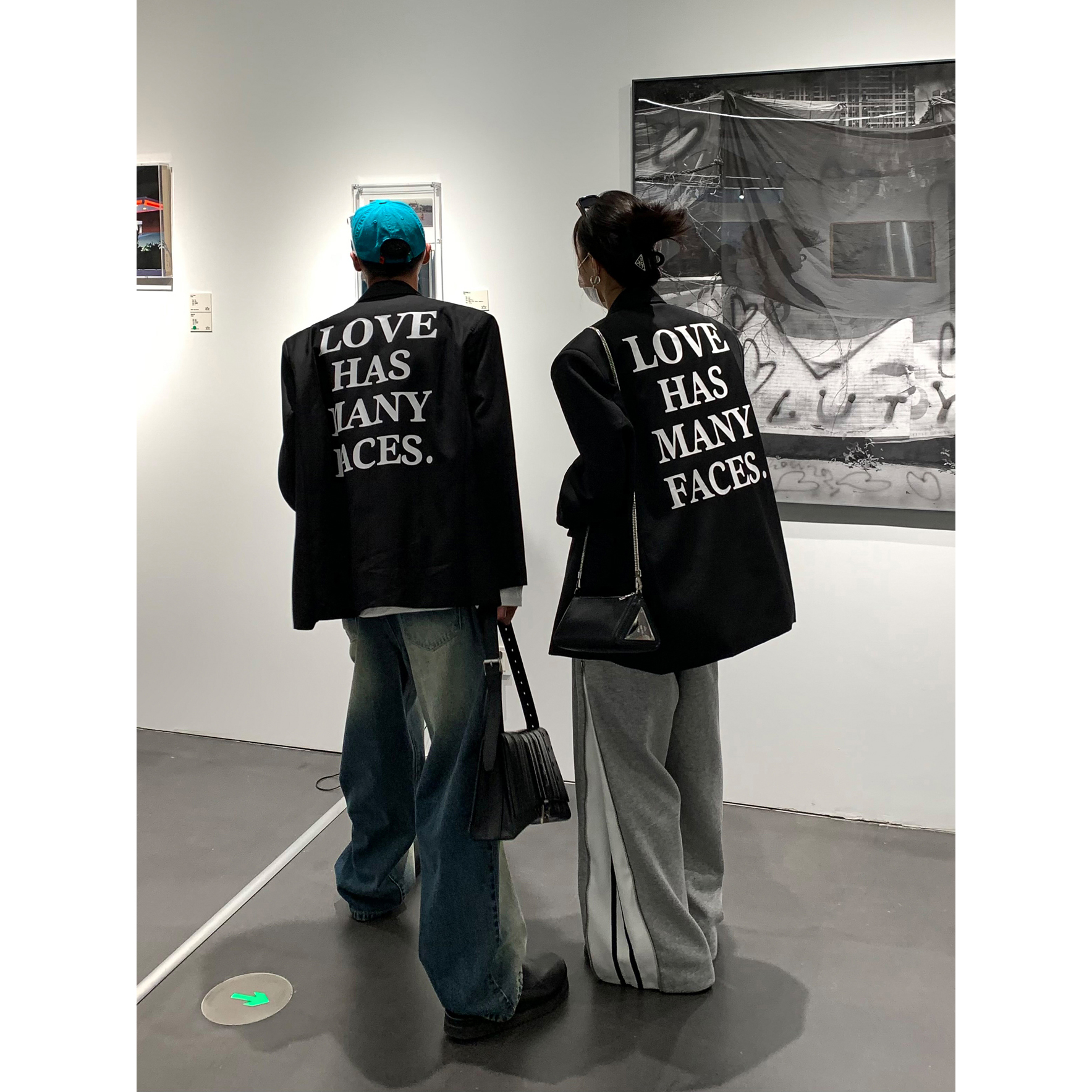 호지 백 레터 프린트 디자인 숄더 패드 정장 남성 정장 재킷 루즈 캐주얼 다재다능한 트렌드의 한국 버전