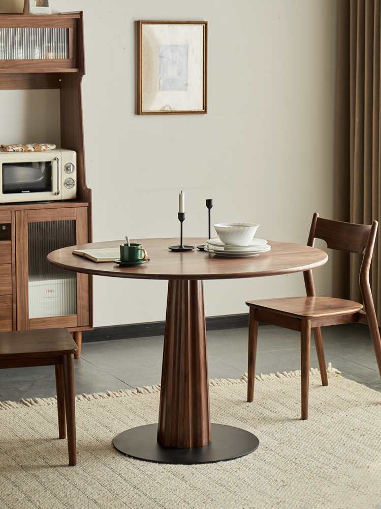 스칸디나비아 원목 원형 식탁 검은 호두 원형 테이블 북미 간단한 캐주얼 식탁 레스토랑 가구 하늘 눈금자 원형 테이블