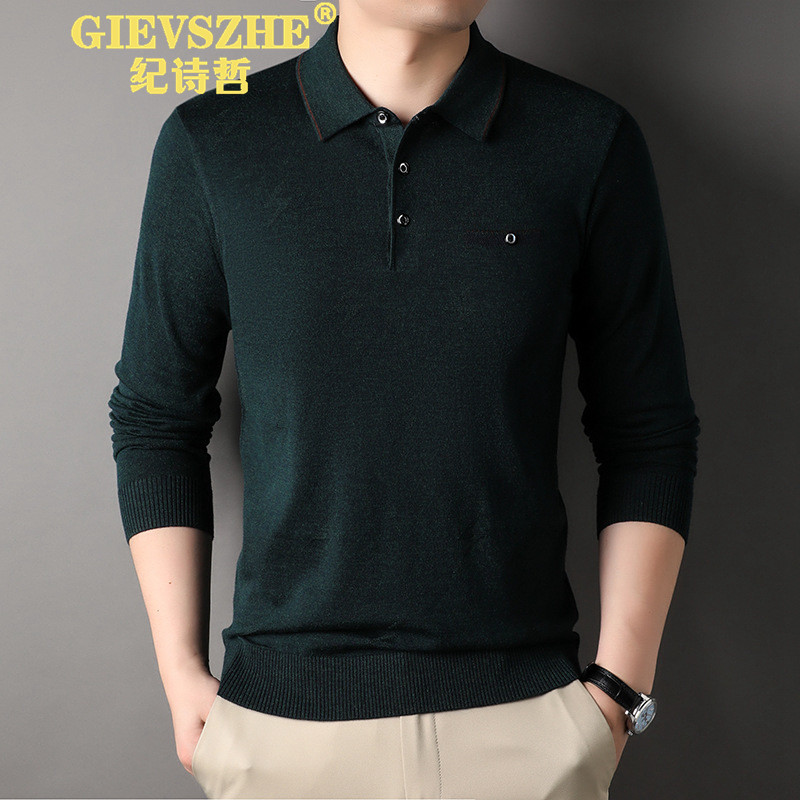 지젤 점퍼 남성 2023 초가을 새로운 시니어 감각의 슈퍼 멋진 폴로 칼라 남성용 이너 니트웨어 긴팔