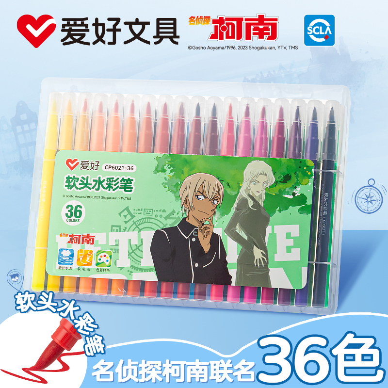 취미 명탐정 코난 공동 브랜드 36 색 소프트 팁 수채화 연필 어린이 빨 수있는 유치원 아기 그림 그리기 미술 특수 12 색 24 색 연필 초등학생을위한 특수 브러시 세트 색연필