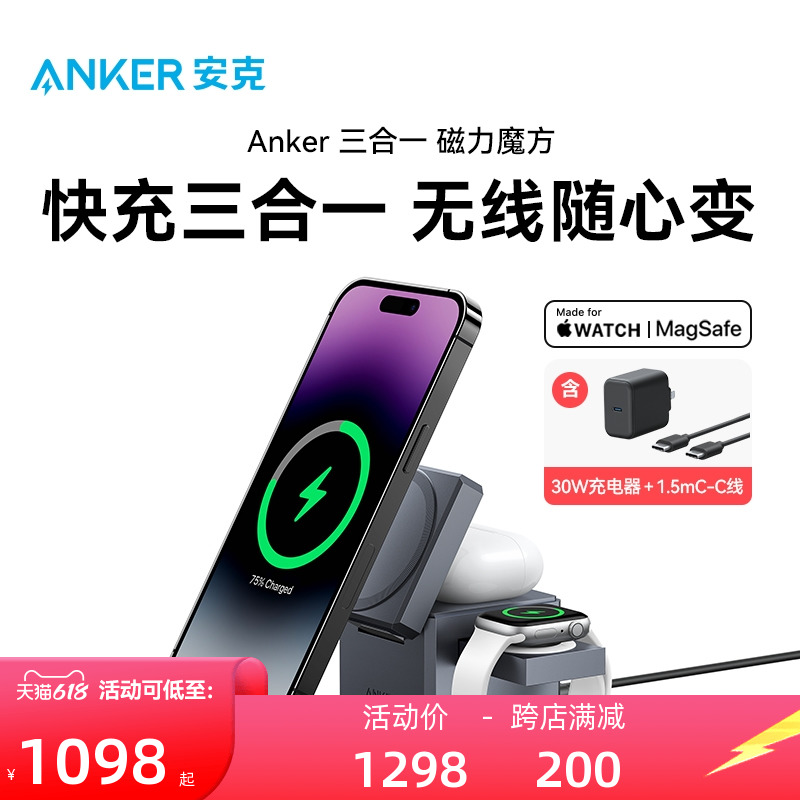 Anker 3-in-1 마그네틱 매직 큐브 마그네틱 무선 충전기(애플 15 아이폰 14iwa용)